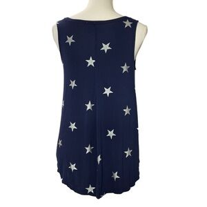 Old Navy Luxe Tank Tunic Top in a Stretchy Comfy Jersey Material Sleeveless Patriotic Metallic Silver Stars Dark Blue Women Small