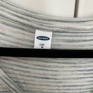 Old Navy Luxe Tee Shirt V Neck Grey Stripe Short Sleeve Size Medium