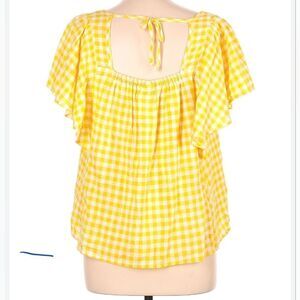 Old Navy M FlutterSlve LINEN Blend Gingham YellowWhite Plaid Tie Back Women Top