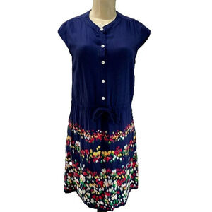 ITEM: Old Navy M Navy Blue Floral Print Button Neck Drawstring Waist Sleeveless Short Dress