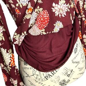 Old Navy MEDIUM Maroon Floral Empire Waist V-Neck Bust Detail Blouse Top