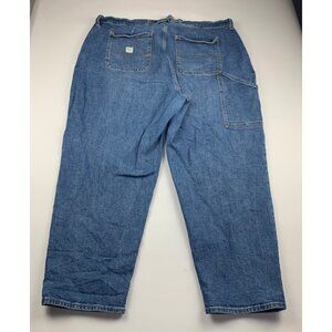 Excellent used condition, cotton stretch blend blue jeans have no significant signs of natural wear or overuse. 5 pockets, zip front, belt loops, adjustable back waist belt piece. Size 20, please reference measurements for sizing & fit inquiries.