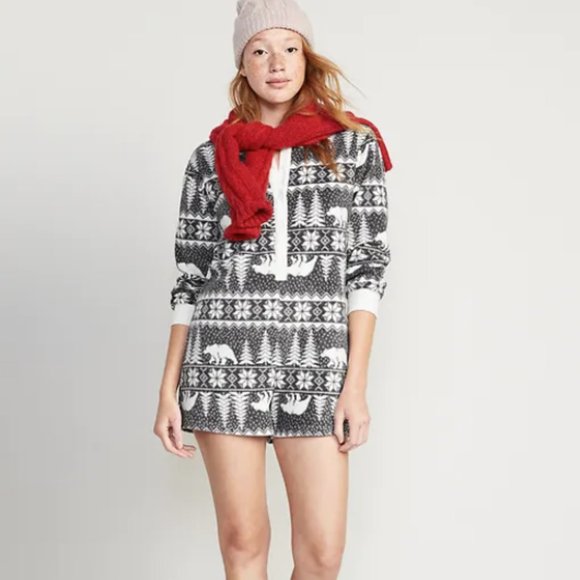 Old Navy Match The Fam Fleece Henley Pajama Romper Size L NWT! Color Is Called "Gray Bear Isle" And Is Gray & Cream.
