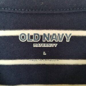 Old Navy Maternity Dress Size Large Long Sleeves Nautical Stripe Navy Blue
