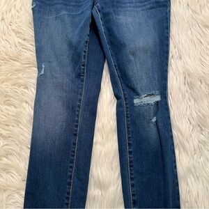 Great condition. Old Navy. Maternity Front-Low Panel Distressed Skinny jean. Dark wash, name is sycamore. Size 4 short. Stretch 67% cotton, 31% polyester, 2% spandex. Waist 14” Inseam 27” Front Rise 7”. All measurements are approximate and taken lying flat. Smoke free home. No trades, offers welcome.
