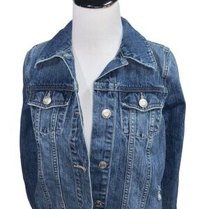 Old Navy Maternity Women's S Small Crop Denim Jacket Distressed Button Closure