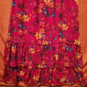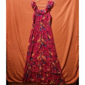 Old Navy Maxi Dress Size Small Fushia Pink Floral Ruffle Hem Sleeveless Boho
