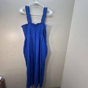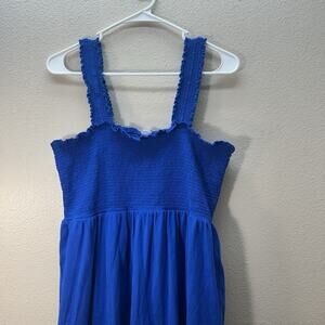 Old Navy Maxi Dress Sz XL Smocked Sleeveless Tiered Pockets Casual Sundress blue
