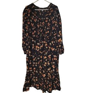 Old Navy Maxi Dress Womens 4xl Floral Longsleeve Pockets Shirring