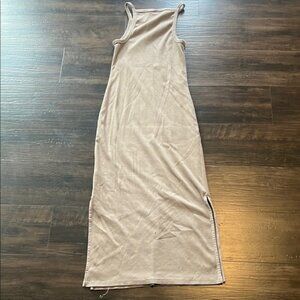This elegant tan maxi dress from Old Navy offers a graceful silhouette that flows beautifully to the floor. Its timeless design ensures a stylish and comfortable fit, perfect for any occasion.