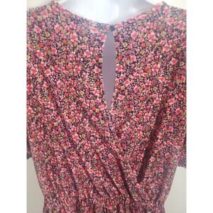 Old Navy Med Pink Floral Velour Short Puff Sleeve Stretchy Keyhole Back Jumpsuit