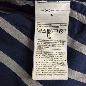 Chic sleeveless tank with vertical navy and white stripes. Lightweight 100% rayon with a flowy relaxed fit. Great for summer layering or workwear under a blazer.
