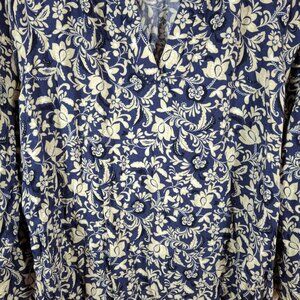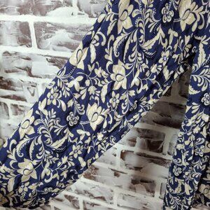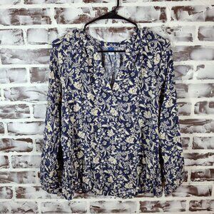 Old Navy Medium Peasant Top Blue White Floral Long Sleeves V-Neck Boho