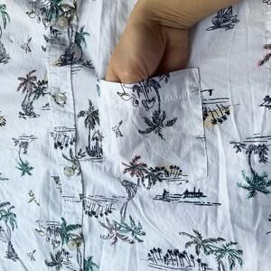Old Navy Men Short Sleeve Tropical Coconut Trees Button Down Shirt size XL,White