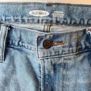 Old Navy Men Waxed Denim Straight Leg Jeans Size 36 x 30, Blue