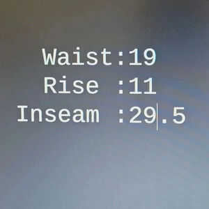 • Waist: 19 inches • Rise: 11 inches • Inseam: 29.5 inches