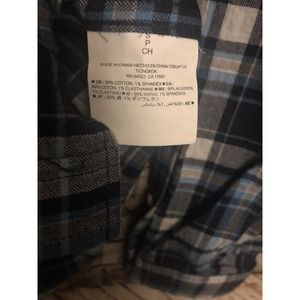 Old Navy Men's Blue White Gray Plaid Shirt Button Down Front Slim Fit Size Small