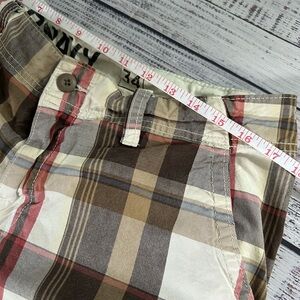 Old Navy Men’s Brown and Red Plaid Y2K Skater Cargo Shorts