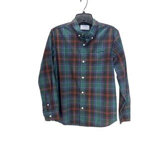 Classic and comfortable, this button-down from Old Navy features a timeless green/navy plaid design and soft cotton fabric. Ideal for casual days, layering, or workwear comfort.