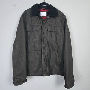 Old Navy Mens Button Up Canvas Chore Coat Sz Large Green Fleece Lined Barn Work