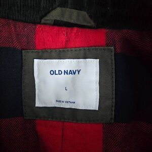 Old Navy Mens Button Up Canvas Chore Coat Sz Large Dark Moss Green Fleece Lined Barn Work Pockets Corduroy Collar