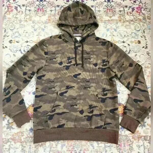 Old Navy Men's Camouflage Olive Pullover Hoody Drawstring Soft Outdoor, sz SM