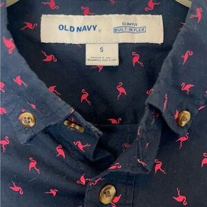 Old Navy Men's Casual Shirt in Navy with Pink Design
