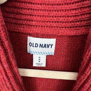 Old Navy Men's Chunky Solid Shawl Cardigan Sweater Wool Blend Size M Red Grandpacore Dad Sweater