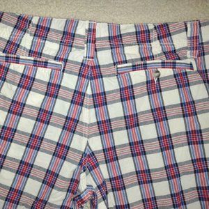 Loose fit, 100% Cotton. White with bold checkered/lined design in Black-Blue-Red-and Grey.
