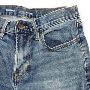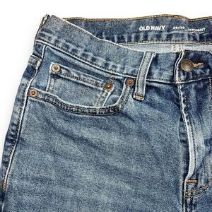 This pair of Old Navy jeans is a classic addition to any wardrobe. Made with a comfortable and breathable fabric blend of spandex and cotton, these jeans feature a straight leg style and a medium wash that makes them perfect for any season. The pants have a convenient zip and button closure, as well as pockets for added convenience. The jeans are available in a size 29 waist and 30 inseam, and are machine washable for easy care. Whether you're dressing up or down, these jeans are a versatile choice that will make you look and feel great.
