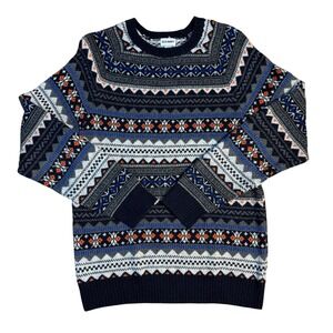 Old Navy Men's Fair Isle Geometric Pattern Crew Neck Sweater Navy M Grandpacore