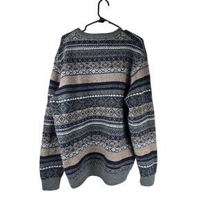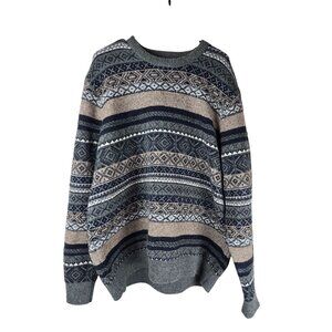 Old Navy Mens Fair Isle Sweater XL Gray & Tan Blend Wool Blend