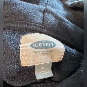 Old Navy men’s pullover hoodie in size Large, featuring a soft fleece lining and eye-catching sun horizon graphic on the front. Blue with a relaxed fit, kangaroo pocket, and drawstring-free hood. Made in Bangladesh. Perfect for casual wear or layering on cool days. Gently worn in great condition.