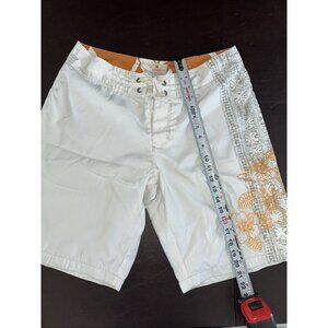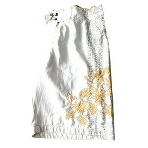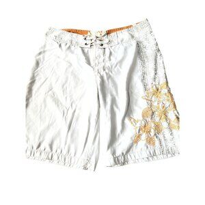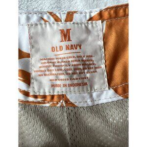Old Navy Mens Hawaiian Board Shorts White W/ Orange Floral Print Size M