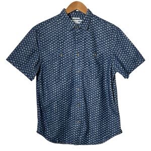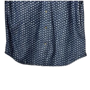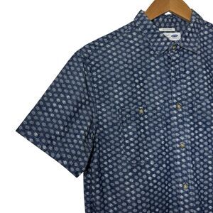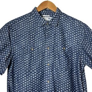 Old Navy Mens Size Large Slim Fit Blue White Button Up Denim Like Shirt Short Sleeve Chest Pockets