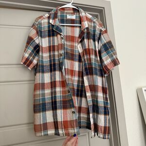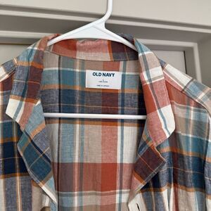 Old Navy Men’s Linen Blend Plaid Button Down Size Large