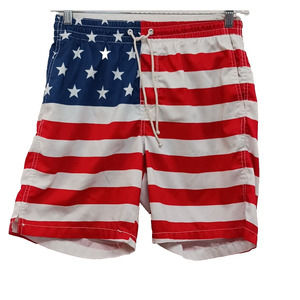 Old Navy Men's Medium 8" Inseam Printed Swim Trunk Americana Flag wear to metal rings no stains or tears see photos
