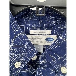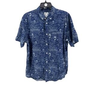Old Navy Men's Navy White Slim Fit Short Sleeve Button-Up Shirt Size Large
