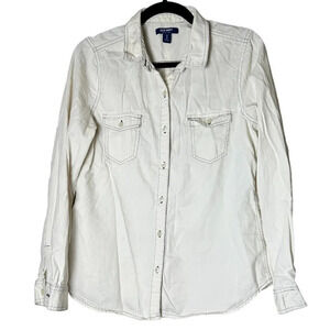 Old Navy Men's Plaid Button-Down Shirt - White and Blue