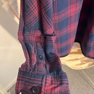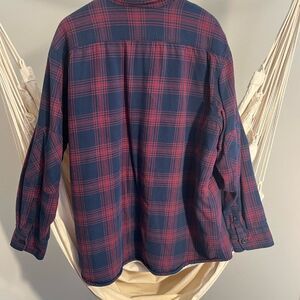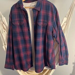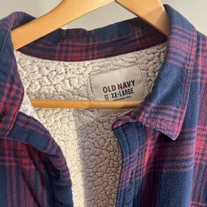 Old Navy Men's Plaid Shirt - Red and Blue Sherpa ButtonDown