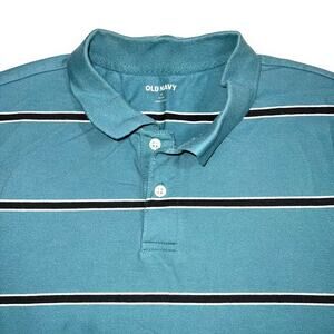 Old Navy Mens Polo T Shirt Top Short Sleeve Pullover Stripes Teal Black White Sm