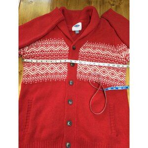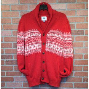 Old Navy Mens Red Fair Isle Cardigan Sweater Size L Holiday Grandpa