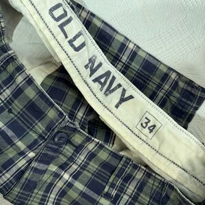 Old Navy Mens Size 34 Green Blue Check Plaid Chino Shorts Cotton Lightweight