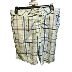 Old Navy Men's Size Medium Swim Trunk Shorts Blue/White/Black Plaid with Tie