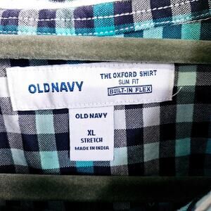 Old Navy Men's Size XL The Oxford Shirt Blue Aqua Checkered Plaid Flex Stretch