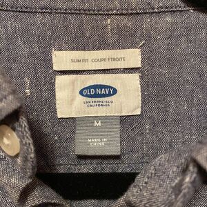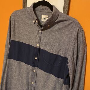 Old Navy Mens Slim Fit Blue Grey and Navy Stripe Button Down Shirt Medium