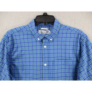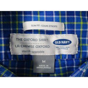 Old Navy Mens Slim Fit Oxford Stretch Shirt Medium Blue & Green Plaid