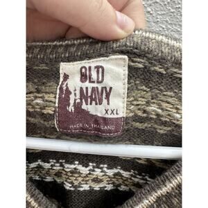 Old Navy Mens Sweater Size XXL Brown Fair Isle Long Sleeve V-Neck Vintage Wool