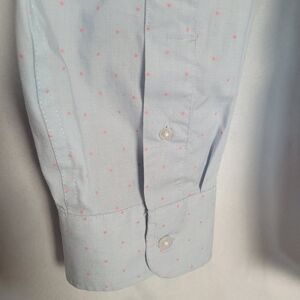 Old Navy The Signature Shirt Slim Fit Built In Flex Non Iron Long Sleeve Button Up Shirt. Men's size XXL. Baby blue pink micro dot. Cotton/ spandex blend. In great preowned condition. Measurements are approximate and are shown in photos.