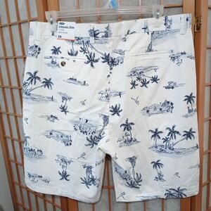 Old Navy Men's White Island Scenic Shorts 38 Ultimate Slim Built-in Flex NWT